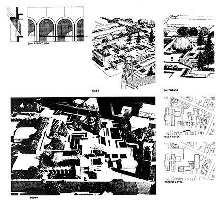 The merit of the design is its essentially non building character where vital city services are integrated into a park like plaza setting. Two of the most distinguished city's architectural treatures are drawn into the composition. The rich architectural vocabulary of the city is maintained through the use of existing motives, materials and color.