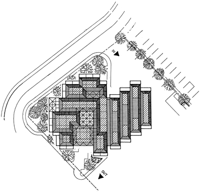 The module size design uses two basic components to achieve utility and aesthetics. The openair steel structure with lightweight metal roof allows for design feasibility for placement of room dividers, lighting fixtures and free access to mechanical ductwork. Skylights bring natural light into the space. Building materials were chosen for low maintenance and sustainability. The forms of the building create an interactive place for work, with inviting quality that integrates harmoniously within the Tiburon community.