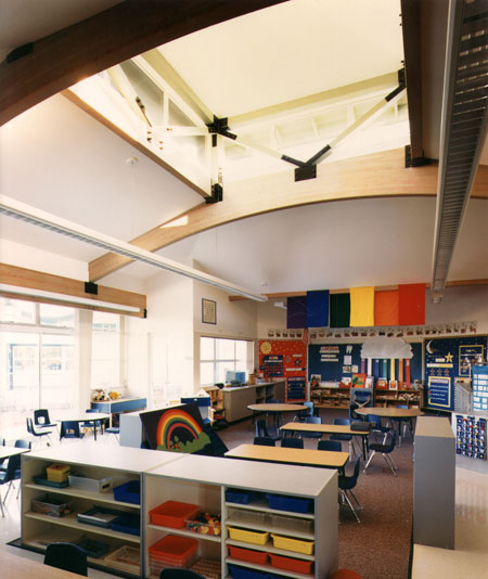 Recognizing that user's requirements change, it is important to develop a structural system that allows for easy modifications when changes occur. In Seward school DHA's structural solution allows for placement of four classrooms within the open space. Wall placement and their relocation can be achieved without any structural modifications.