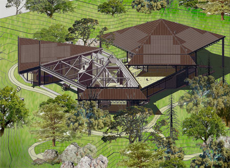 The design of the building and its features embraces sustainable construction design, materials and methods of building. Site grading is limited, indigenous planting is protected and restored, the majority of fabrication takes place off-site, solar energy is captured effectively for energy use, and the footprint of the building is tight in order to maximize permeable land.