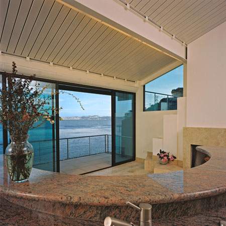 Decks step down from the floor levels to enable uninhibited views. Every room connects with the ever-changing colors and motion on land, sea, and sky providing a constant source of stimulations.
